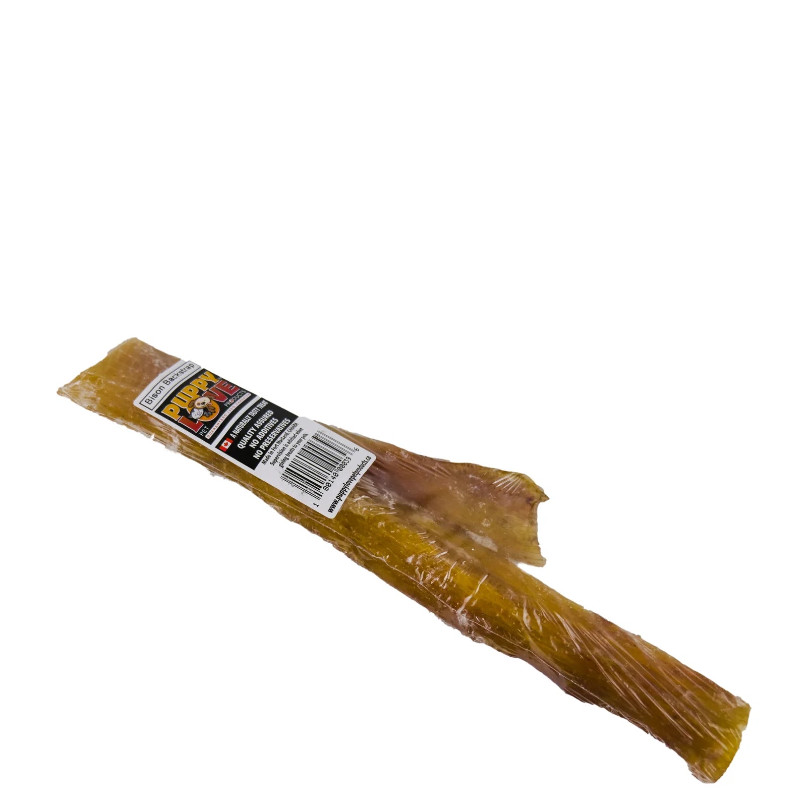 - One 8-10" Puppy Love Bison Backstrap Chew